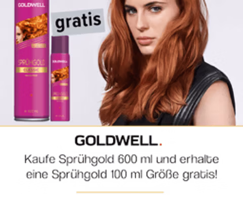 Pflege-Power zum Mitnehmen! Beim Kauf eines Goldwell-Sprühgold 600 ml erhältst du das Sprühgold mini gratis dazu. Perfekt für die Handtasche – perfekt für dein Styling!