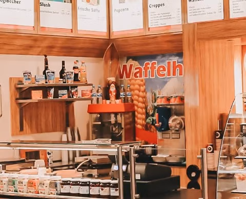 Waffel-Haus im FORUM Duisburg! Hier bekommen Sie nicht nur leckere Waffeln sondern auch Crepes in verschiedenen Variationen wie z. B. mit Zucker und Zimt, Apfelmuss oder Nutella! Für den kleinen Hunger zwischendurch gibt hier auch verschiedene Joghurtbecher mit Obst oder Salate. Wir freuen uns auf Ihren Besuch.